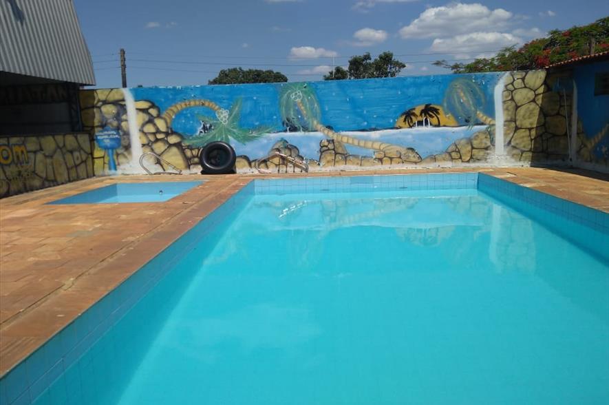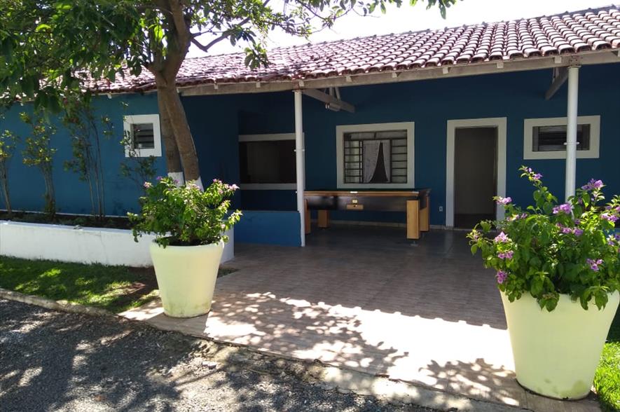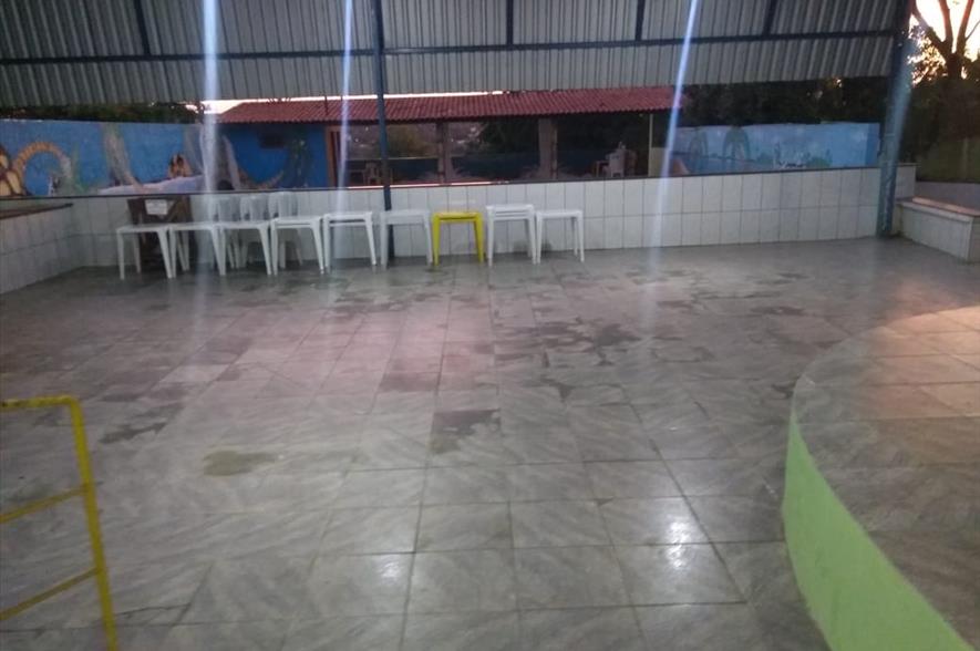 Chácara tem: -salão coberto para 200 pessoas -casa com três quartos -acomodação para 35 pessoas -wi-fi -freezer -geladeira -fogão industrial -10 jogos de mesas -palco, área de churrasqueira -duas piscinas -campo de futebol -banheiro adaptado para PCD